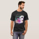 I give wanted to give this a 4 instead of a 5 because these Basic DARK T0shirts run unexpectedly SLIM or Narrow. Which is great if you do not have a potbelly, but I have a paunch. It isn't the shirt's fault that I've got a beer belly. The design and shirt itself is a quality cotton shirt. The color is more of a deep purple, but still a very pretty color. The Basic DARK T-shirts run a bit SLIMMER than the Basic Ts. The neck is a fraction narrower (or seems to be narrower) also. I'm a paunchy middle-aged woman and my neck is 12 inches (31cm) thick and the neckline fell about the same as in the photo of the man, and I had the desire to tug it a bit. So if you're a thick necked man or like loose shirts, be aware these are slimmer shirts. Once I get rid of my lockdown paunch it'll look great. The shirt washed well in cold water with no apparent bleeding. We don't have a dryer, so it hung dry. Did not shrink. Love the colors and the design. The design looks smaller on my shirt than it does on the model on-line. But still, it looks good on the shirt. The printing looks as it does on the model, just the size seems fractionally smaller. Washed garment in cold water, hung dry and design appeared unaffected.