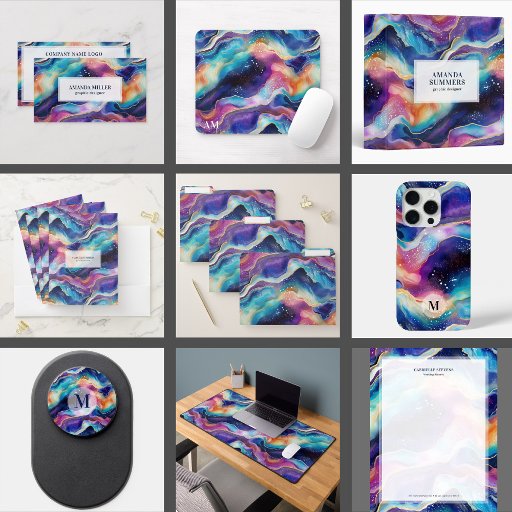 Aesthetic rainbow glitter agate business card
