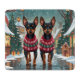 This festive design captures the joyful spirit of the holiday season, featuring an adorable dogs.Nestled in a winter wonderland, complete with a decorated Christmas tree, and beautifully wrapped presents. Snowflakes gently fall, adding a magical touch to the scene, while the vibrant colours of the holiday decorations create a warm and cheerful atmosphere.