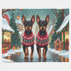 This festive design captures the joyful spirit of the holiday season, featuring an adorable dogs.Nestled in a winter wonderland, complete with a decorated Christmas tree, and beautifully wrapped presents. Snowflakes gently fall, adding a magical touch to the scene, while the vibrant colours of the holiday decorations create a warm and cheerful atmosphere.