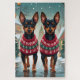 This festive design captures the joyful spirit of the holiday season, featuring an adorable dogs.Nestled in a winter wonderland, complete with a decorated Christmas tree, and beautifully wrapped presents. Snowflakes gently fall, adding a magical touch to the scene, while the vibrant colours of the holiday decorations create a warm and cheerful atmosphere.