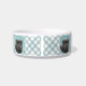 This is a heavy, durable bowl decorated with Tibbies of many colors, the perfect size for hungry/thirsty Tibs. The design is interesting and printing clear.