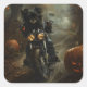 Affenpinscher Riding Motorcycle Halloween Scary Square Sticker