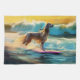 Immerse yourself in the playful world of canine adventure with this captivating painting. A spirited dog takes to the waves, skilfully riding the surf on a sun-kissed beach. The vibrant artwork beautifully captures the essence of beachside excitement as the dog fearlessly rides the waves, embodying the spirit of fun and freedom. With a harmonious blend of colours and dynamic brushstrokes, this piece brings the joy of surfing and the beach right into your space, making it a delightful addition to any art collection.