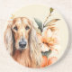 This stone coaster is a great and classy gift idea to anyone who works at a desk, has 'their' spot on the sofa or just adores the dog breed. A beautiful watercolor portrait of an Afghan Hound dog sitting against lovely peach colored lilies flowers.