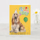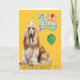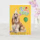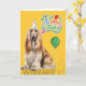 Afghan Hound Dog in a Party Hat on Yellow Birthday Card