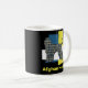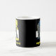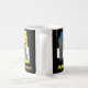 Afghan hound cute dog silhouette yellow, blue and black Grid Lines abstract pattern on three colour abstract pattern and black background. Personalise with your name or your dogs name on both sides of mug.