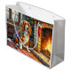 Afghan Hound Fireplace with Christmas Lights Large Gift Bag