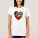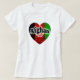 Nice shirt with a heart shown with the Afghan flag on it. It says: Afghan girl The background is white in color. Nice to give you as a gift or for yourself to show you pride in being Afghan. colors: black, green, white and red.