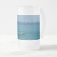 Frosted mug with a boat in middle of Lake Huron with the beautiful Mackinac Bridge behind it. I took this photo from Mackinac Island, Michigan. Looking for more prints or products? Feel free to visit my store: http://www.zazzle.com/timelessmomentsphtgy