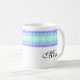 Whether you're sipping your morning coffee, enjoying a cup of tea in the afternoon, or indulging in a soothing hot chocolate in the evening, this personalised mug with its colourful geometric border is not only a functional vessel but also a piece of art that brings joy and a sense of personal connection every time you use it. All you need is love and coffee.