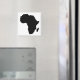 White square magnet with an Africa silhouette. Simple and effective, perfect for the refrigerator or anywhere else it will stick.
