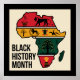 A red, green, and yellow illustration of the shape of Africa. There are African symbols like a lion, a tree, and a drum. The text "Black History Month" is written in large, bold letters above the illustration.