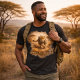 The warm savanna tones and textured, blended edges are designed to integrate naturally into the fabric, avoiding harsh borders and giving the print a worn-in, garment-ready feel. The gold-sand typography remains bold and legible on dark tees, reinforcing the message without overpowering the artwork.