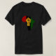 Show your cultural knowledge and pride with this t-shirt featuring the shape of Africa filled with the colours of red, black, green and gold, the colours of many African flags and also the colours adopted by Rastafarian cultures as well as Pan-Africanists to represent themselves. Also features a black fist in the centre signifying the struggle of the oppressed people to rise!