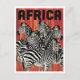 Capture the raw, graphic beauty of the savanna with this striking Africa travel poster! Rendered in a bold, retro style with a high-contrast red, orange, and black palette, this design features a magnificent cluster of zebras. The dramatic black-and-white stripes contrast sharply with the fiery background, giving the image an intense, sophisticated feel reminiscent of classic safari posters. This print is perfect for adding a touch of African wild elegance to a modern living room, office, or lodge-style setting. It's a wonderful gift for nature lovers, travelers, or collectors of striking graphic art.