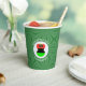 Paper cups with lids for your party have an angel wearing the flag of the African Diaspora for party holiday decorating or Christmas decor. The African American Flag Christmas angel is found inside a white fractal circle of squiggly squares. The background is a green fractal of squiggly squares. Add your own text or personalise with a name and the year. Can be used for Kwanzaa, too.