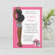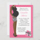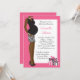 This cute pink girl baby shower invitation features an African American mum to be wearing a black and white zebra print skirt with polka dot gifts.