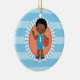 This design features a cute African American Basketball Player with blue uniform, orange basketball and blue background.