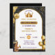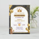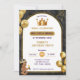 Adorable Black boys little prince birthday party invitation template. Cute prince birthday invitation with gold grown