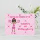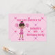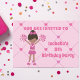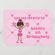 This adorable pink cheerleading birthday party invitation features a pretty African American cheerleader girl in a cheer uniform holding pink pom poms. Personalise this cute children's party invite with your black child's name in lovely pink and write your details on the back of this card.