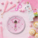 This cute, custom cheerleading birthday party paper plate features a drawing of a pretty African American cheerleader in a cheer uniform holding pink pom poms. Personalise this cute kids birthday decor with your black little girl's name between the fun heart pattern.