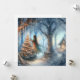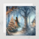 Personalised Christmas card. Illustration of African-American fairies or angels decorating a little Christmas tree in an enchanted magical forest. Beautiful ethereal cottage core fairytale background.