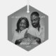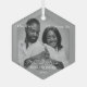 The bright and cheerful African American couple's first Christmas as Mr. & Mrs. Photo Hexagon Glass Ornament. A simple and modern design that is fully customisable with the replacement of your special Photo, year, and name.