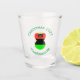Shot glass shows an angel wearing the African American Flag for holiday decorating or Christmas decor. The African American Christmas angel is found surrounded by text allowing you to add your own text or personalise with a name and the year. Lettering is green.