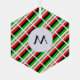 A tiled design using the African American Flag or the Flag of the African Diaspora. A round circle of white squiggly squares has a place for an initial so you can personalise this hexagon shaped glass ornament.