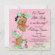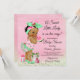 Watermelon baby shower invitations with adorable African American baby girl wearing a cute watermelon outfit and gifts on a pretty watermelon watercolor background. This girl watermelon baby shower invitation is easily customised for your event by simply adding your details.