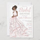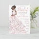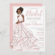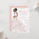 Glam bridal shower invitation features dark skin and hair bride in silver glitter wedding gown. Bridal heels and clutch on back. Choose your favourite hairstyle! Contact me if you need a specific eye colour.