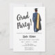 Watercolor graduation illustrations featuring young man with graduation gown and cap. A sleek and stylish design with fully editable templates allowing you to customise the name, date, time and location with ease.