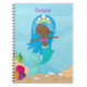 Cute custom mermaid kids notebook that features an adorable blue haired African American girl with a cool teal tail swimming next to beautiful coral in the ocean. Cool summer birthday gift a black child who loves the beach.
