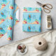 Cute custom African American mermaid wrapping paper that features an adorable blue haired black girl with a cool teal tail swimming next to beautiful seashells in the ocean. Cool summer birthday gift wrap for a pool party or beach girl.