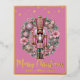 African American Nutcracker Pink Pastel Wreath Foil Holiday Postcard