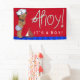 Nautical baby shower banner with adorable African American ethnic sailor boy on a red and blue background. You can add text and change the background colour on this cute nautical baby shower banner.