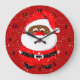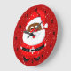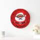 African-American Santa Claus Christmas custom wall clock that features a cute whimsical black Santa Claus and snowflakes on red background.