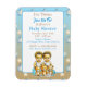 Cute blue watercolor baby shower babies of colour Twins themed invitations for twin boys with starry background. Cute watercolor twin boys dressed in blue surrounded by teddy bears. Blue and brown gradient.
