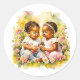 African-American Twin Girl's Baby Shower Classic Round Sticker