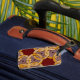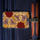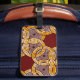 Share your globetrotting soul on your honeymoon with these colourful and bold maroon and gold Ankara luggage tags. This Ankara pattern is based on traditional Dutch wax print fabrics popular across the African diaspora.