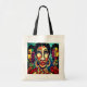 A custom tote bag that features an image of three African women celebrating their heritage.