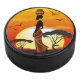 African Beautiful Woman Silhouette on African Suns Hockey Puck