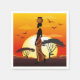 Beautiful Woman African Silhouette dressed with Wax traditional Fabric Dress, carrying a hand made decorated jar, Walking in the Amazing Nature of the African Savanna, on a warm and Peaceful Sunset. Original Vector Illustration Copyright BluedarkArt TheChameleonArt.