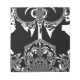 White: Used for shapes, patterns, and highlights, the white contrasts sharply against the black, emphasising the artwork's features.