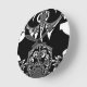 White: Used for shapes, patterns, and highlights, the white contrasts sharply against the black, emphasising the artwork's features.