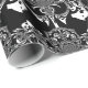 White: Used for shapes, patterns, and highlights, the white contrasts sharply against the black, emphasising the artwork's features.