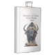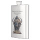 The product is a good size and came exactly as it was pictured. The lid is not attached to the flask, which could be dangerous on drunken nights... The print came out surprisingly well and looks very sharp. Would definitely recommend.