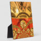 This decorative art print features a rich, abstract African cultural art design with a striking blend of a rich golden and red design. The print showcases a series of intricate, golden circles adorned with traditional black patterns, set against a vibrant red background. This piece is perfect for those seeking a colorful African cultural decor, a golden ethnic design, or a vibrant red geometric art print for home decor.