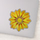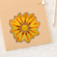 Sticker in a digital painting of a single Gazania flower, sometimes called an African Daisy, in shades of golden yellow and warm orange, on a soft mandarin orange background